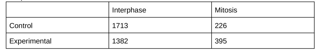 Table 1: Final Values for Number of Cells in Mitosis and Interphase for Control and Experimental Samples