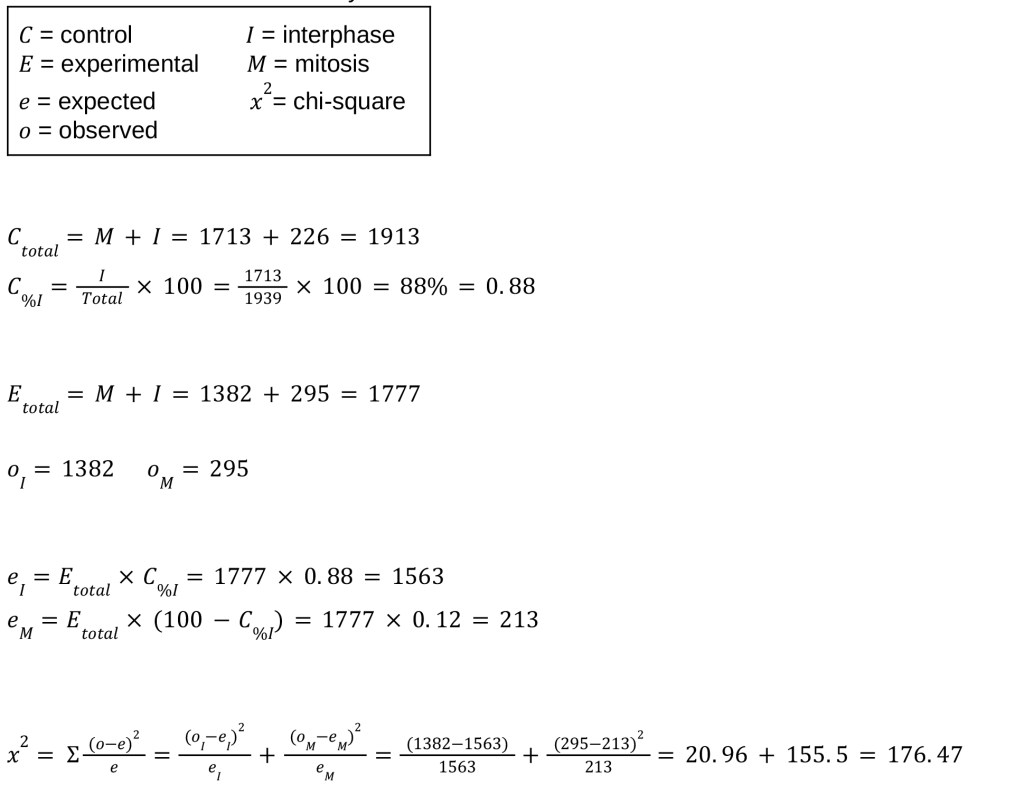 After performing a chi-square test (see calculations section), the results demonstrated that with the (calculated) one degree of freedom, there is a statistical difference between the IAA-treated and water-treated groups. This demonstrates that the plant growth hormone IAA has a significant positive influence on the number of cells entering mitosis.